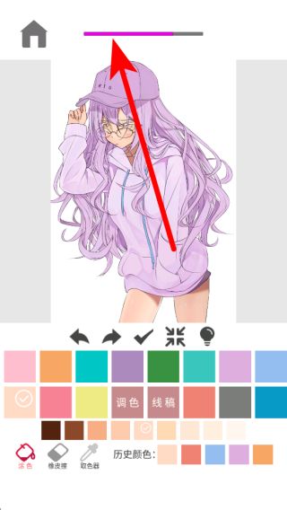 3、可拖動界面上方的進(jìn)度條,會告訴玩家當(dāng)前的涂色進(jìn)度,當(dāng)進(jìn)度條慢的時候,證明已經(jīng)完成涂色的部分。
