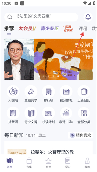 1、進(jìn)入三聯(lián)中讀軟件,在首頁(yè)點(diǎn)擊課程,進(jìn)入課程頁(yè)面。