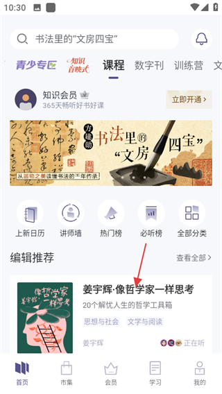 將知識(shí)內(nèi)容按人文社科、自然科學(xué)、藝術(shù)文化等領(lǐng)域梳理成完整體系,課程與解讀層層遞進(jìn),用戶(hù)可跟隨體系逐步學(xué)習(xí),實(shí)現(xiàn)知識(shí)的系統(tǒng)化積累。