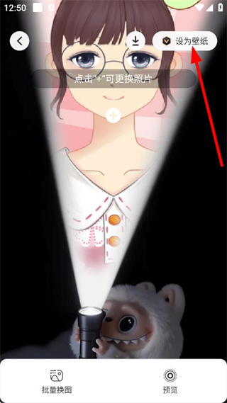 4、在壁紙編輯頁面,點(diǎn)擊設(shè)為壁紙,將編輯好的壁紙?jiān)O(shè)為手機(jī)壁紙。