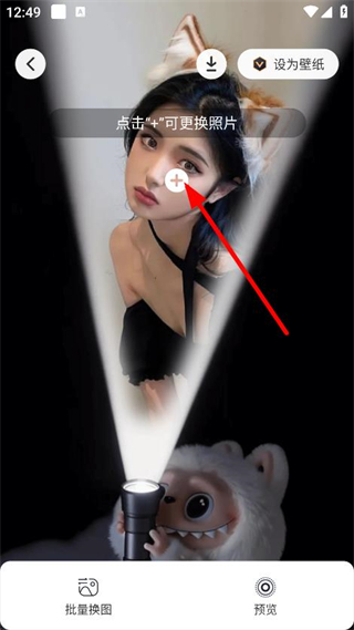 2、隨后我們可以在壁紙編輯頁面,點(diǎn)擊+號,進(jìn)入照片選擇頁面。