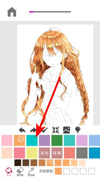 3、涂色過程中,若對(duì)顏色不滿意,可重新選色覆蓋,還能使用歷史顏色功能,快速選取之前用過的顏色,方便進(jìn)行色彩搭配。