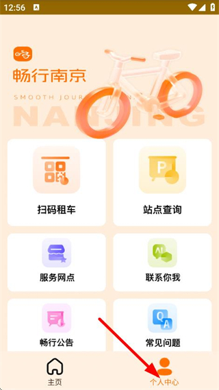 2、在暢行南京主界面,點(diǎn)擊個(gè)人中心,進(jìn)入登錄頁(yè)面。