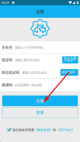 4、填寫手機(jī)號(hào)、驗(yàn)證碼、短信驗(yàn)證碼等信息后,點(diǎn)擊注冊(cè),完成注冊(cè)操作。