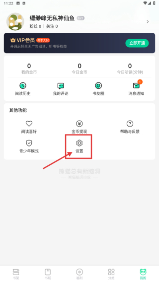 2、在個(gè)人中心,點(diǎn)擊設(shè)置選項(xiàng),進(jìn)入設(shè)置界面。