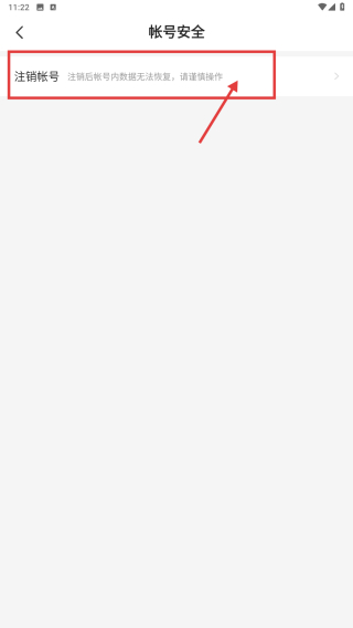 4、在帳號(hào)安全頁面,點(diǎn)擊注銷帳號(hào)選項(xiàng),準(zhǔn)備進(jìn)行帳號(hào)注銷操作。