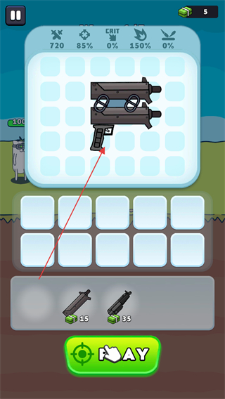 2、賺取金幣后,點(diǎn)擊下方武器欄購(gòu)買新武器并放置在格子中。