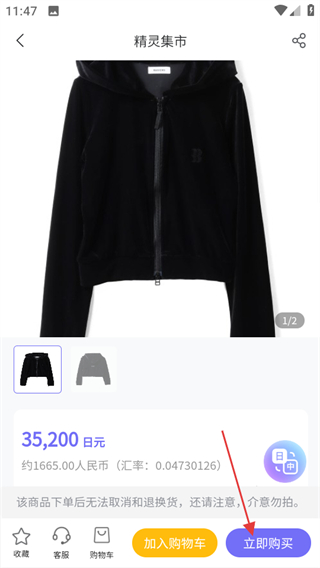 3、在商品詳情頁面,點(diǎn)擊立即購買,進(jìn)入商品規(guī)格選擇頁面。