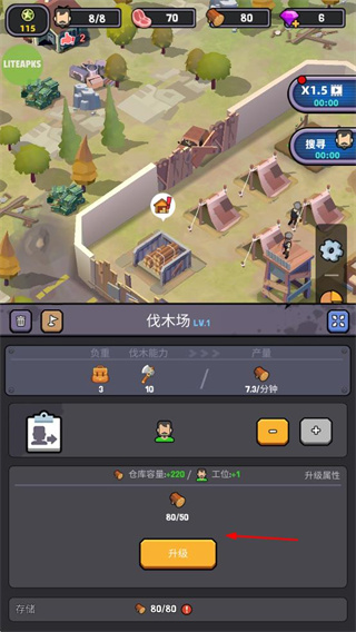 4、可對伐木場等建筑進行升級,提升倉庫容量、工位數(shù)量、伐木能力和產(chǎn)量,增加木材資源的獲取效率。