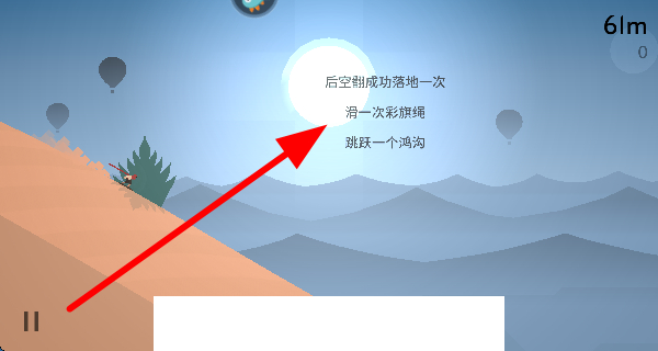 1、在沙漠場景中,嘗試完成后空翻落地、滑彩旗繩、跳躍鴻溝等目標,推進游戲進程。