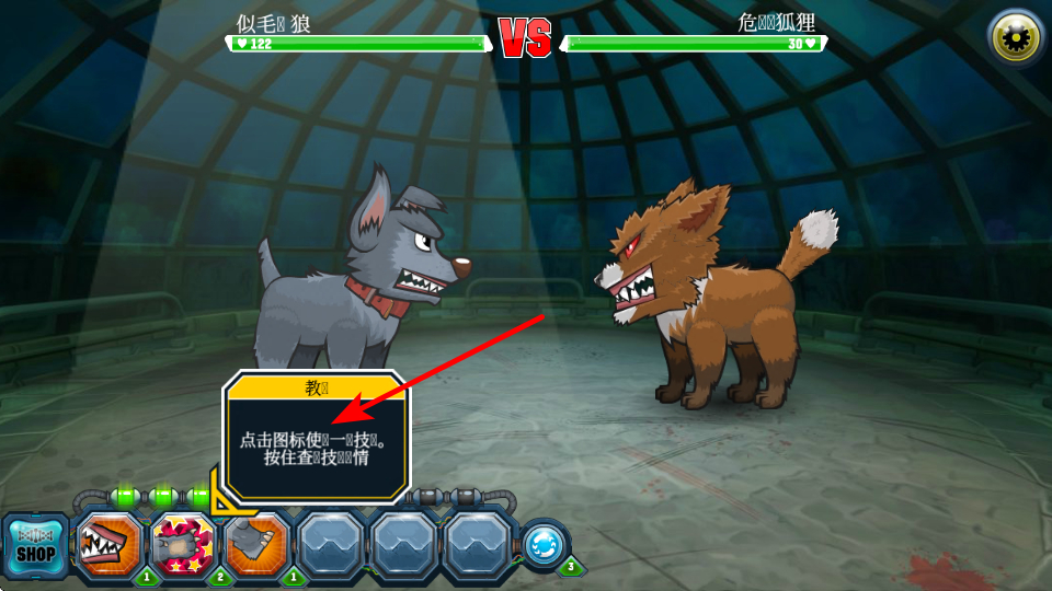 2、根據(jù)提示點(diǎn)擊技能圖標(biāo)使用技能,或按住圖標(biāo)查看技能詳情,對(duì)敵方怪物造成傷害。