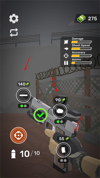 包含手槍、步槍、霰彈槍等多種類型武器,每種武器初始性能不同,可通過擊敗僵尸獲得的金錢逐步升級,解鎖更強的攻擊效果,適應(yīng)不同戰(zhàn)斗場景。
