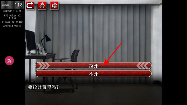 2、做出選擇,面對是否拉開窗簾等選擇時,根據(jù)游戲提示和劇情走向做出決策如選擇拉開。