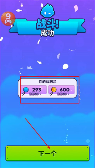 4、通關(guān)后可以獲得相應(yīng)的游戲道具,點擊下一個按鈕即可繼續(xù)游戲。