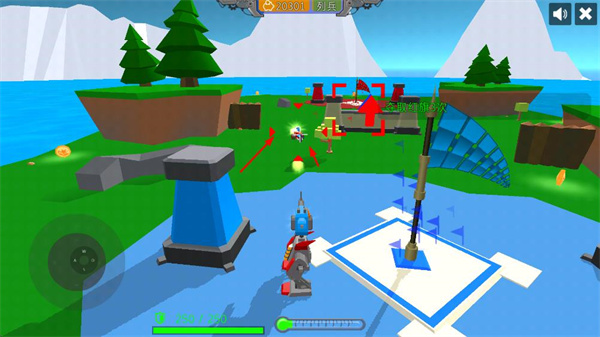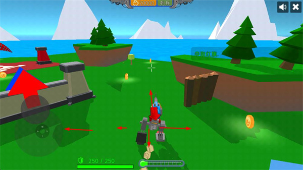 1、操控機(jī)器人角色移動(dòng),收集金幣等資源,界面顯示護(hù)盾值和資源收集進(jìn)度。