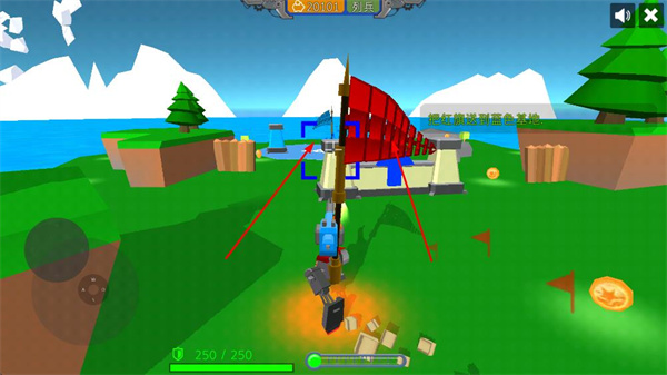 2、可操控投石裝置等建筑,瞄準(zhǔn)目標(biāo)發(fā)射,完成建筑修復(fù)等任務(wù),界面會(huì)顯示操作提示。