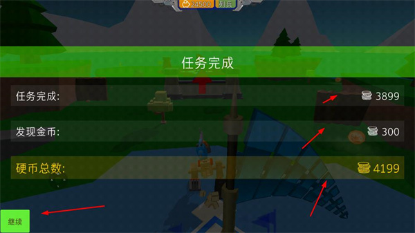 4、完成任務(wù)后,會(huì)顯示任務(wù)完成界面,呈現(xiàn)任務(wù)獎(jiǎng)勵(lì)、發(fā)現(xiàn)金幣數(shù)量和硬幣總數(shù),點(diǎn)擊繼續(xù)進(jìn)入下一個(gè)環(huán)節(jié)。