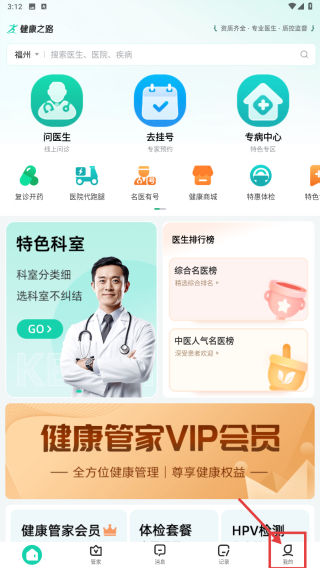 1、打開健康之路APP,點(diǎn)擊底部我的選項(xiàng),進(jìn)入個(gè)人中心頁面。