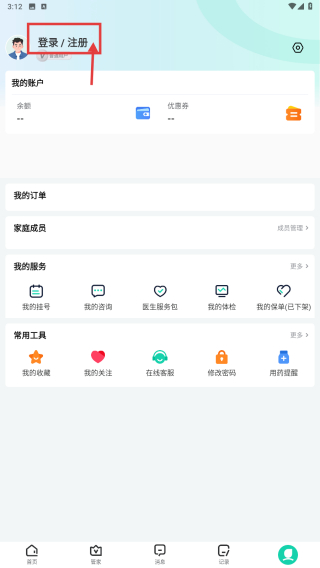 2、在個(gè)人中心,點(diǎn)擊登錄/注冊(cè)區(qū)域,進(jìn)入登錄方式選擇頁面。
