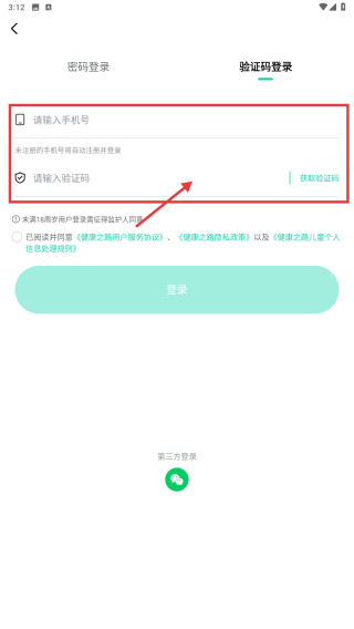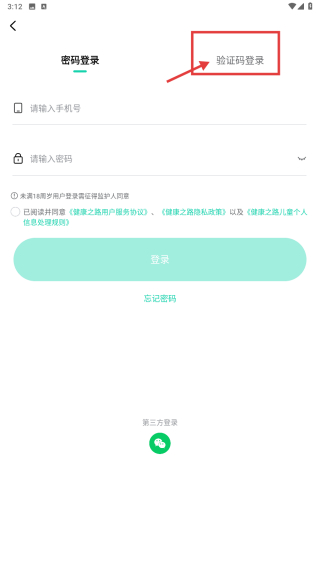 3、在登錄方式選擇頁面,點(diǎn)擊驗(yàn)證碼登錄選項(xiàng),進(jìn)入手機(jī)號(hào)登錄界面。