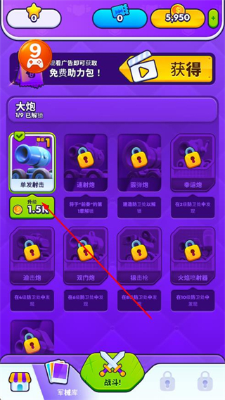 2、在軍械庫(kù)界面,選擇需要升級(jí)的大炮并點(diǎn)擊。