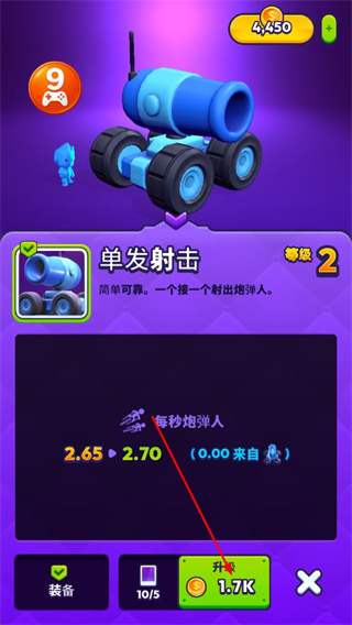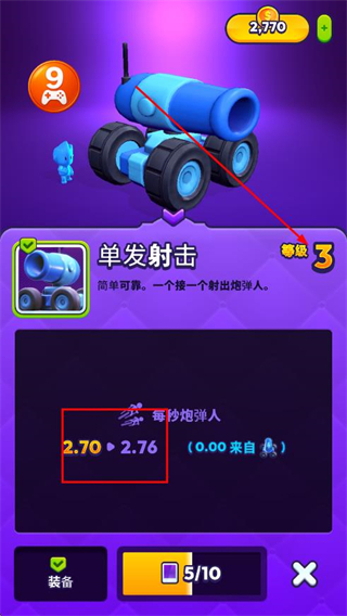 4、成功升級(jí)大炮后,可以查看到等級(jí)以及屬性。