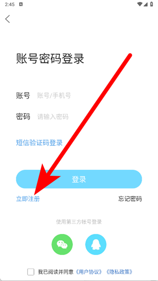 3、在登錄頁(yè)面,點(diǎn)擊立即注冊(cè)。
