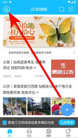 1、打開江漢熱線,點(diǎn)擊左上角頭像。