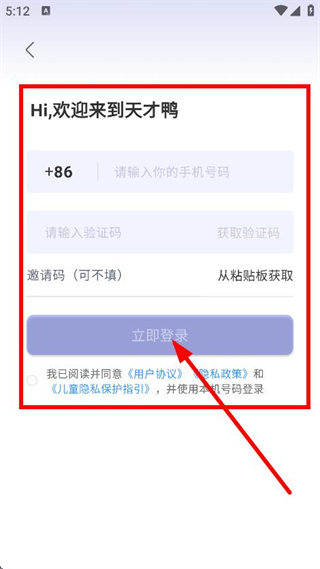 4、輸入手機號碼、驗證碼等信息后,點擊立即登錄,完成登錄操作。