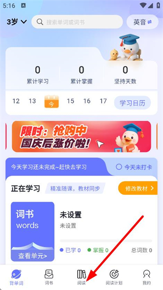 1、在學(xué)習(xí)類APP首頁,點(diǎn)擊閱讀,進(jìn)入閱讀頁面。