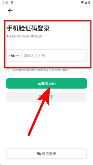 3、在手機驗證碼登錄頁面,輸入手機號后,點擊獲取驗證碼。