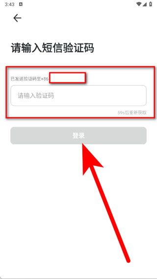 4、在短信驗證碼輸入頁面,輸入驗證碼后點擊登錄,完成注冊。