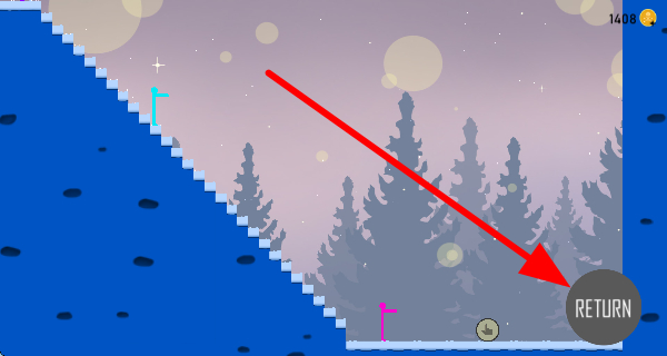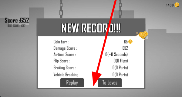 4、每次游戲結(jié)束后,會顯示得分、金幣等信息,若想再玩一局,點(diǎn)擊Replay按鈕,就能重新開始下坡。