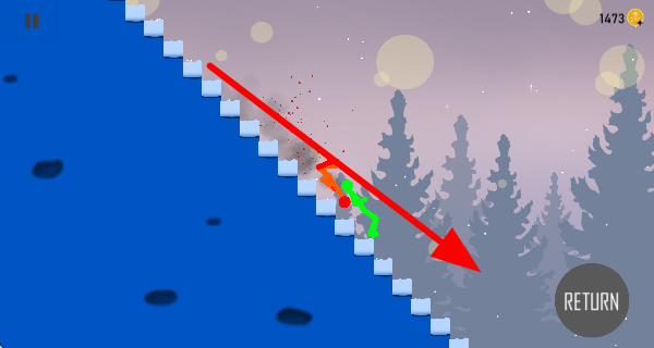 設(shè)置了旋轉(zhuǎn)鋸齒輪盤火箭推進(jìn)器等特殊裝置,觸碰到這些障礙物會使火柴人身體分離或飛行軌跡改變,創(chuàng)造意想不到的摔落路徑。