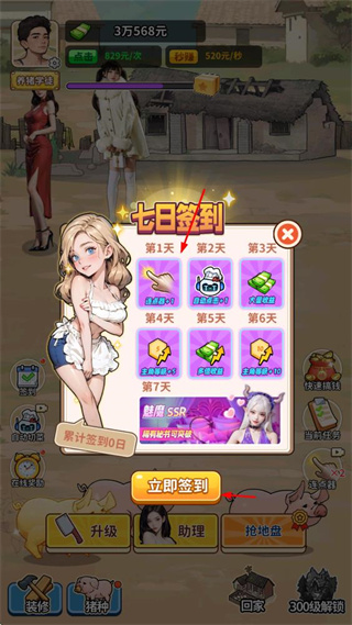 4、參與七日簽到活動,可領(lǐng)取連點器、自動點擊、大量收益、主角等級提升、多倍收益、稀有秘書等獎勵,點擊立即簽到領(lǐng)取每日獎勵。