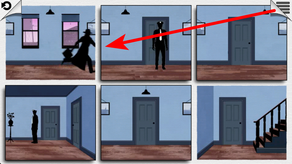 創(chuàng)新性地采用漫畫分鏡式的游戲機制,可以拖拽場景畫面改變播放順序,每一個順序調整都會導致截然不同的結局發(fā)生。