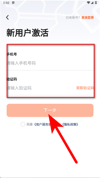3、輸入手機號和驗證碼,勾選協(xié)議后點擊下一步。