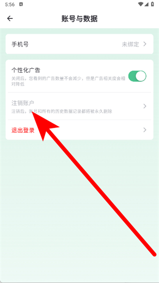 3、在賬號與數(shù)據(jù)頁面,點擊注銷賬戶。