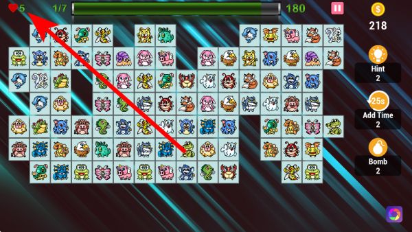 2、左上角顯示生命值,若在規(guī)定步數(shù)或時(shí)間內(nèi)未達(dá)到通關(guān)要求,會(huì)扣除生命值,生命值耗盡則游戲結(jié)束,所以要盡量高效消除動(dòng)物,保住生命值。