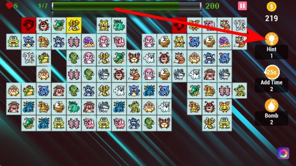 3、右側(cè)有提示道具,點(diǎn)擊后會(huì)顯示一對(duì)可消除的動(dòng)物,幫助玩家在難以找到消除對(duì)象時(shí)找到思路,但提示道具數(shù)量有限,需合理使用。
