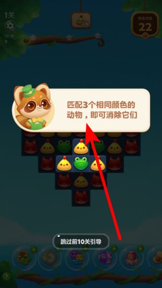 1、游戲核心是匹配3個相同顏色的動物,即可消除它們,消除后上方動物會下落填充空位,形成新的可消除組合,以此不斷積累分?jǐn)?shù),朝著關(guān)卡目標(biāo)推進(jìn)。