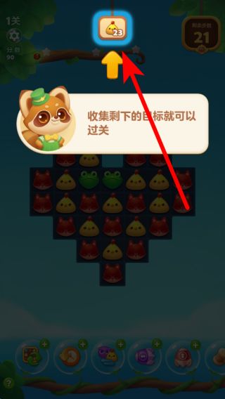 2、關(guān)卡中會顯示需要收集的目標(biāo)數(shù)量,收集剩下的目標(biāo)就可以過關(guān),要時刻關(guān)注目標(biāo)進(jìn)度,優(yōu)先消除與目標(biāo)相關(guān)的動物,提高通關(guān)效率,順利達(dá)成收集要求。