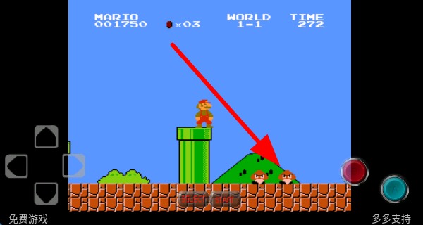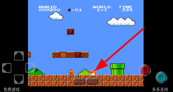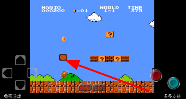 1、操控馬里奧在場景移動,遇到帶問號的磚塊,頂一下磚塊,可能會出現(xiàn)金幣或道具,收集它們增加分數(shù)。