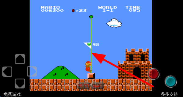 2、遇到綠色旗桿,操控馬里奧跳躍觸碰,會(huì)獲得分?jǐn)?shù)獎(jiǎng)勵(lì),還能朝著關(guān)卡終點(diǎn)推進(jìn),完成當(dāng)前關(guān)卡。