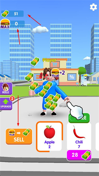 2、點(diǎn)擊SELL按鈕,將卡路里兌換成現(xiàn)金,積累資金用于后續(xù)升級(jí)等操作。