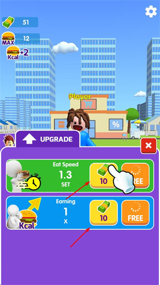 3、進(jìn)入升級(jí)界面,花費(fèi)現(xiàn)金提升進(jìn)食速度和收益倍數(shù),優(yōu)化游戲效率。