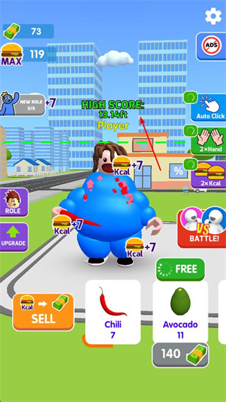 4、關(guān)注高分記錄,不斷食用食物積累卡路里,挑戰(zhàn)更高分?jǐn)?shù),同時(shí)可參與對(duì)戰(zhàn)等玩法。