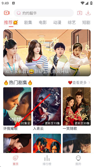 1、在視頻APP首頁(yè),點(diǎn)擊要觀看的劇集,進(jìn)入劇集播放頁(yè)面。