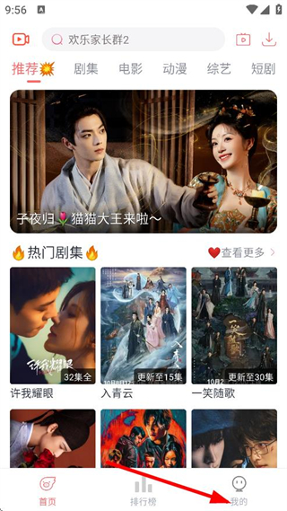 1、在視頻APP首頁,點擊我的,進入個人中心頁面。