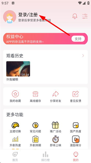 2、在個人中心頁面,點擊登錄/注冊,進入登錄頁面。